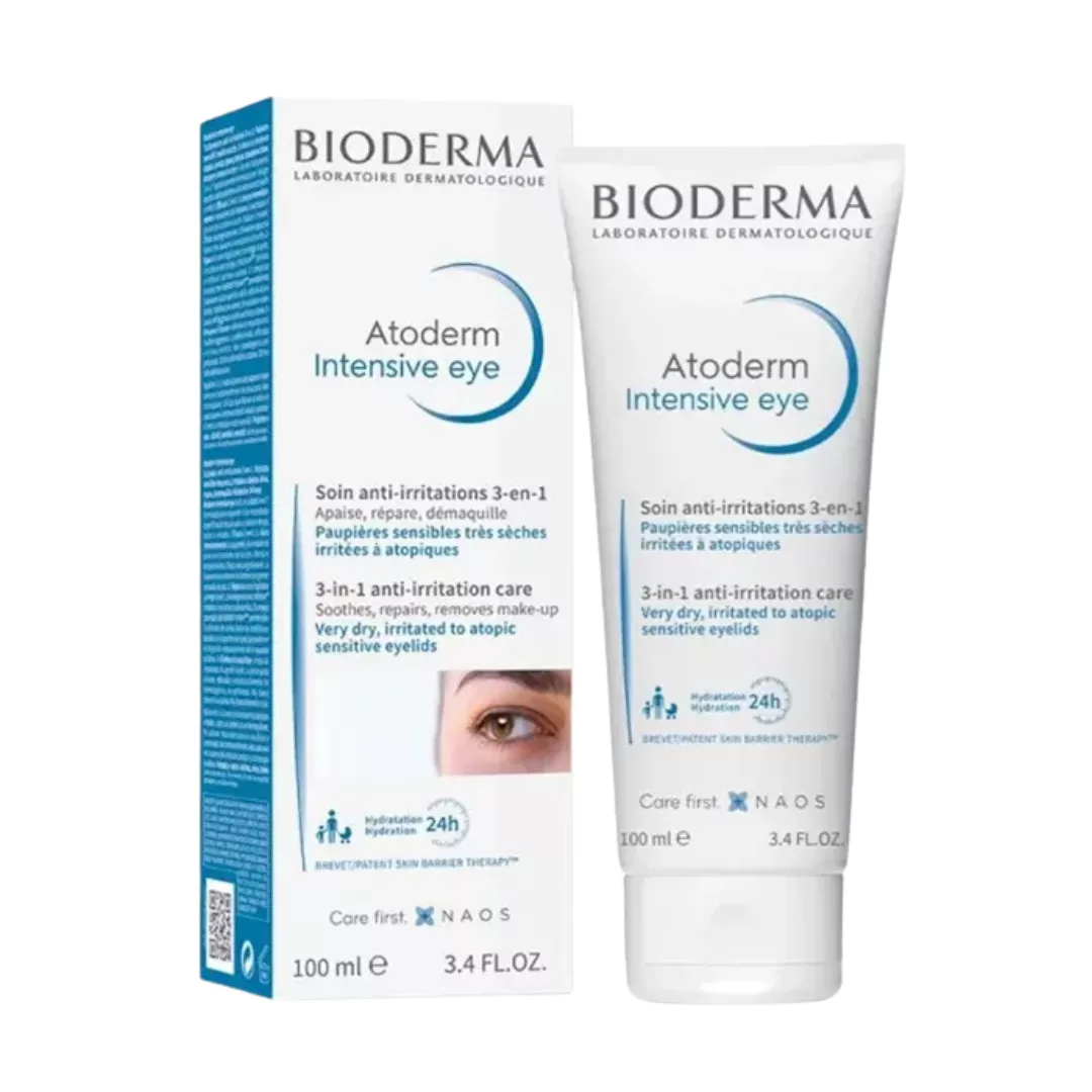 Bioderma Atoderm Intensive Eye est un soin dermatologique 3-en-1 conçu pour les paupières sensibles, sèches, irritées ou sujettes à l’eczéma atopique. Formulé pour apaiser, réparer et protéger la zone fragile du contour des yeux, ce traitement offre à la fois une hydratation intense, une action anti-grattage et un démaquillage en douceur sans rinçage.