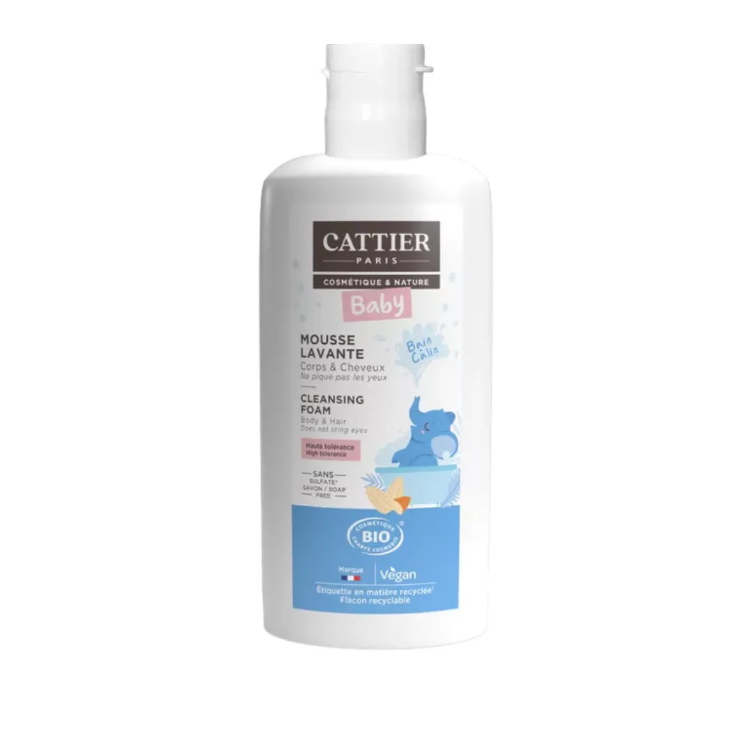 La Cattier Bébé Mousse Lavante est une mousse nettoyante douce formulée pour nettoyer efficacement la peau et les cheveux des nourrissons tout en respectant l’équilibre cutané ; sa texture légère facilite la toilette quotidienne, élimine en douceur impuretés et excès de sébum et procure confort et souplesse à la peau sensible.