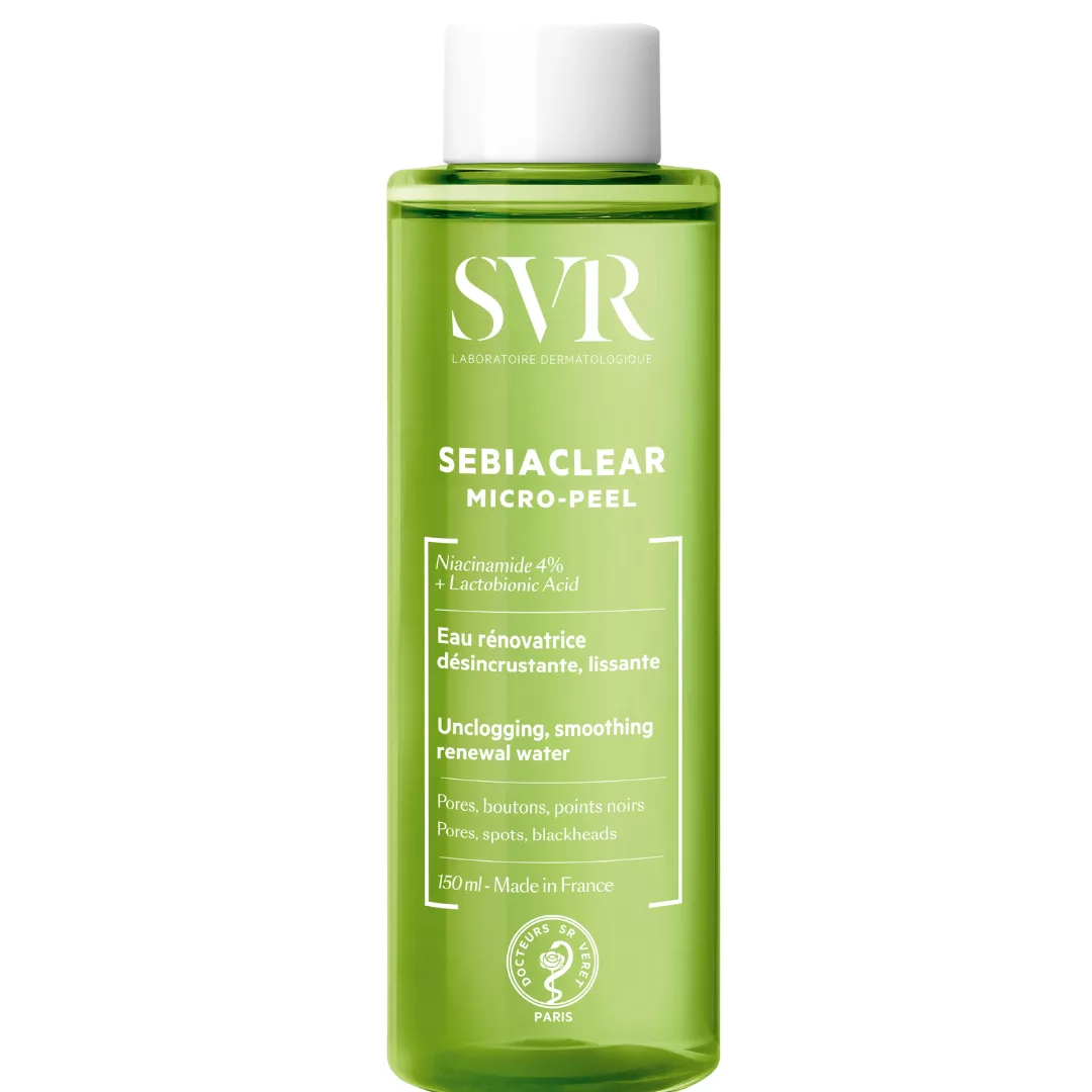 Le SVR Sebiaclear Micropeel est une solution exfoliante conçue pour purifier et affiner le grain de peau, idéale pour les peaux à tendance acnéique. Ce soin peeling quotidien élimine les cellules mortes et réduit l’apparence des pores tout en respectant l’équilibre de la peau grâce à sa formule sans alcool enrichie en gluconolactone et acide salicylique. Adapté aux peaux sensibles, il aide à retrouver une peau plus nette et lumineuse.