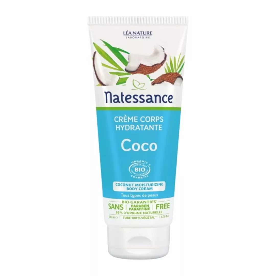 La Natessance Crème Corps Coco est une crème hydratante corps à la texture onctueuse conçue pour nourrir la peau quotidiennement : enrichie en huile de coco végétale et agents relipidants, elle apporte hydratation, confort cutané et souplesse sans laisser de film gras, adaptée aux routines de soin corporel pour peaux sèches à normales et formulée pour une bonne tolérance.